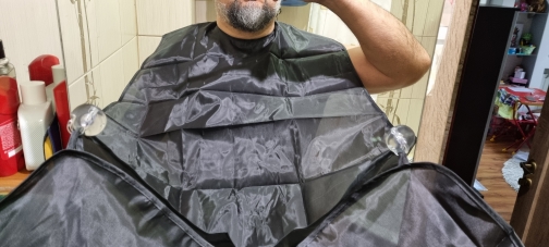 A very convenient thing for a beard clipper, the material is dense, synthetics, the hair is easy to shake out, easy to wash, you can glue on either a mirror or a table.
