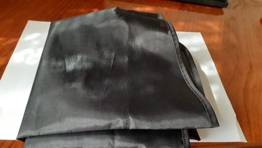 Good size. Easy to use. Material is OK although it's pretty thin and can be seen through (last picture shows hair products through the material)