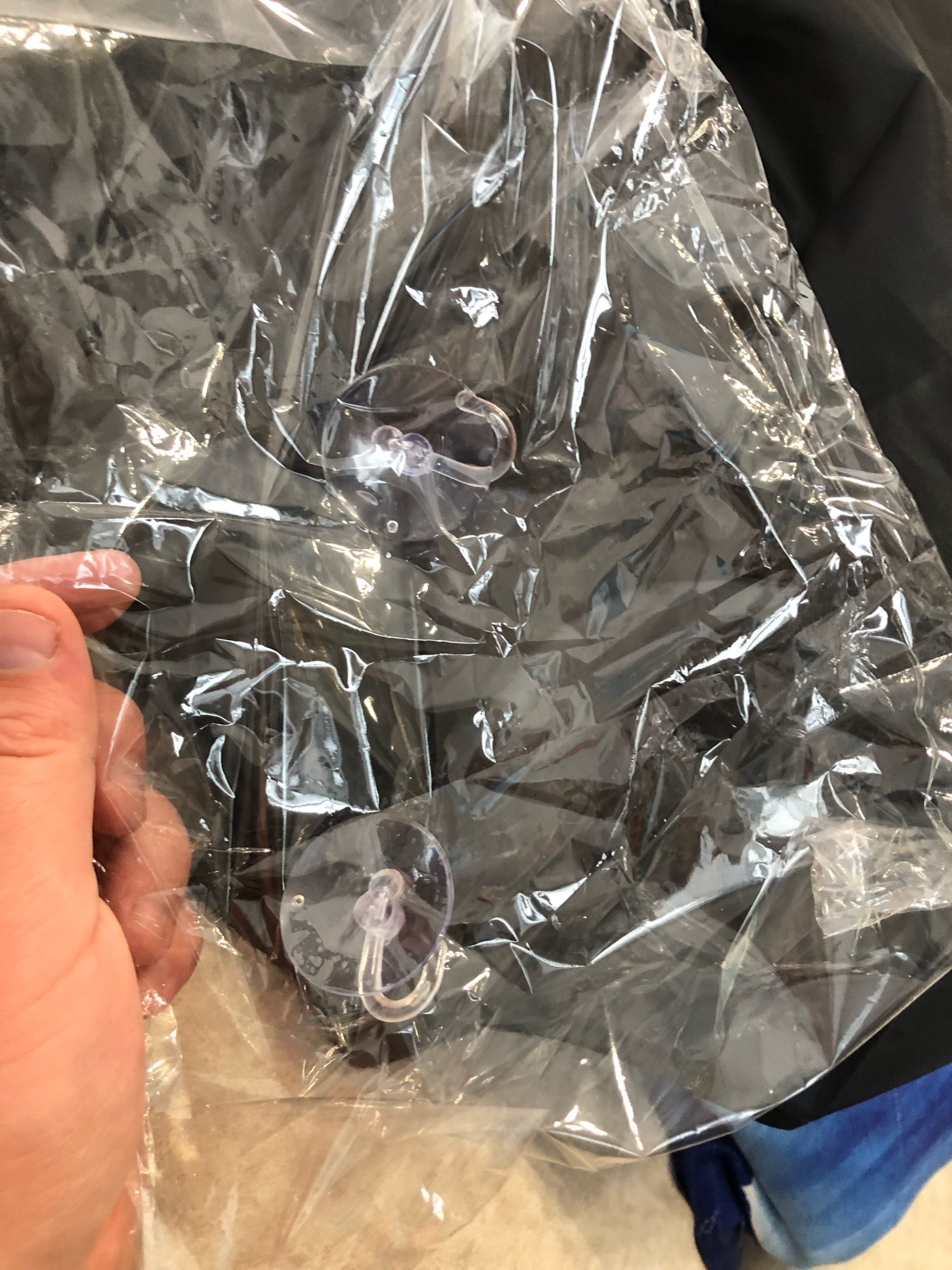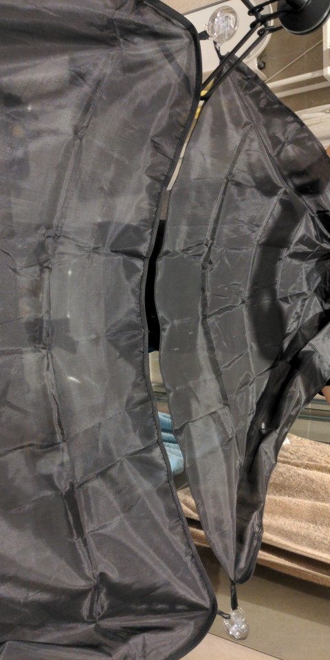 Match the description. Suction Cup dent, but its function is performed perfectly. The size of cloth more than I thought, it is even better. Mounted on the neck with Velcro, reliable. Satisfied with the purchase.